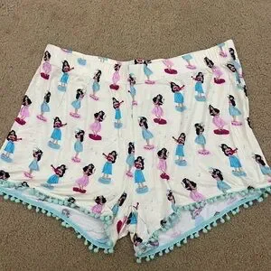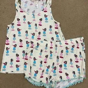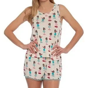 Nite nite munki munki Women's Cream Sleepwear Set with Colorful hula girl Print