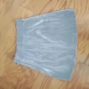 H&M Silver Mini Skirt Size 8. Hits mid thigh. Perfect for a holiday party. Fits true to a size 8. Smoke free home.