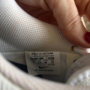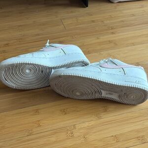 Chic Nike sneakers with a white leather base and pink accents. Perfect for everyday style. Size 8. GREAT condition!!