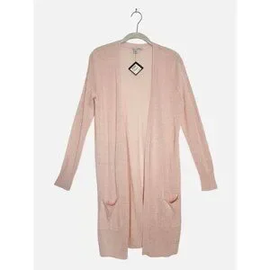 Halogen Long Linen Blend Open Long Sleeve Cardigan in Pink - Sz S - New