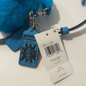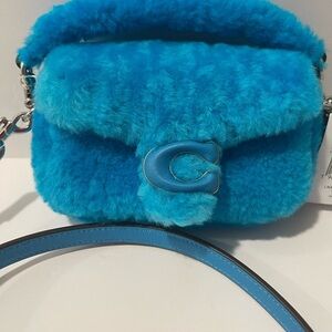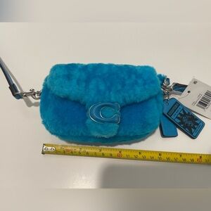 Coach mini blue fur bag. Lil Nas colllab. Stylish and vibrant blue fur women bag, perfect for adding a pop of color to any outfit.