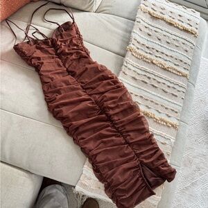 Oh Polly Brown Ruched Dress