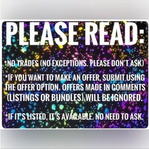 NO TRADES. If item is listed, it is available. Please submit offers using the offer button. Offers in comments will be ignored. Making comments on the price will result in member being blocked.