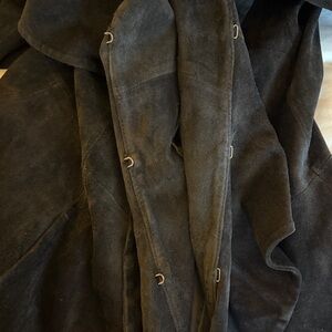Vintage Margaret Godfrey Black Suede Ruffle Front Coat 6