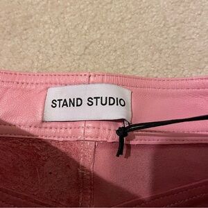NWT and no defects at all. STAND STUDIO candy floss pink lamb leather mini skirt. European size 32= X-small 2. My measurements flat waist 13 1/2” and centerback length is 14 1/2”. Super cute!! Retail $425. Tote 21.
