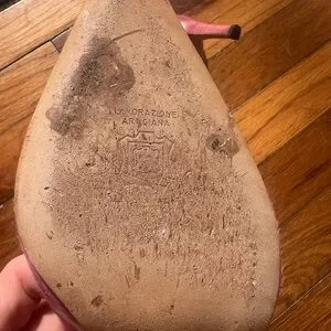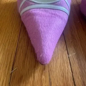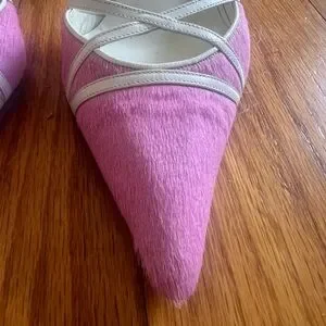 Manolo Blahnik Pink Pony Hair Slingback Heels Size 37 Kitten Heel