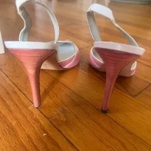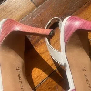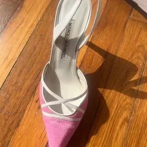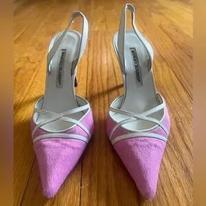 Authentic Manolo Blahnik pink pony hair slingback heels, size 37.