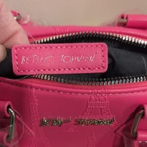 Betsey Johnson Vibrant Pink Satchel with Eiffel Tower Charm