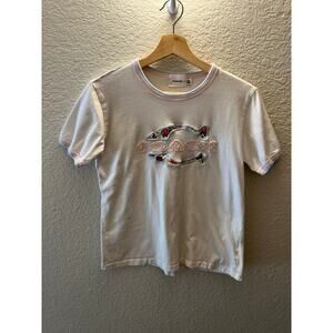 Coach Floral Appliqué Logo Tee White Pastel Ringer Short Sleeve Size M