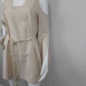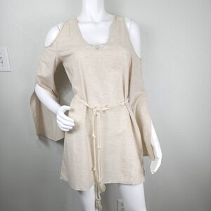 Above Mediocre Taste Beige Linen Cold Shoulder Womens Dress Size Small