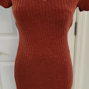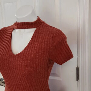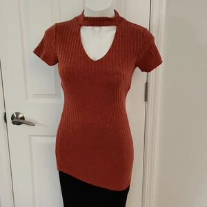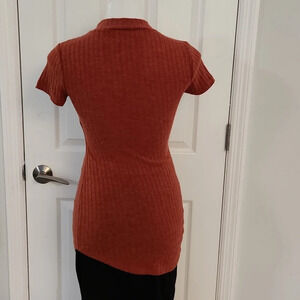 Love J Orange Ribbed Asymmetrical Top