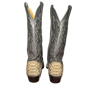 Justin boots, python cowboy boots, exotic western boots, womens size 7D, genuine snake skin boots, USA made boots, western fashion, rodeo style