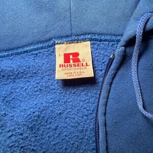 Vintage 70s Russell Athletic Zip Up Hoodie Sweatshirt Pockets USA Made Blue Sz L