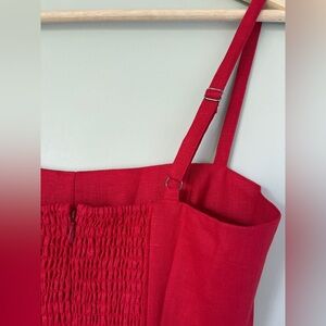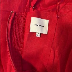 NEW Reformation Katarin Linen Midi Dress Lipstick Red Lace Detail | US 0 UK 4