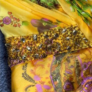 Yellow formal maxi length dress with bling detail on bodice
