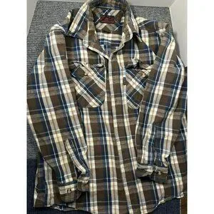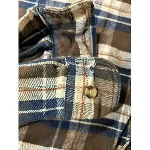 Five Brother Mens L Brown & Blue Plaid Flannel Shirt Long Sleeve Button-Up