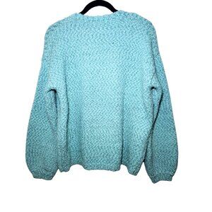 Yet Again Turquoise Round Neck Long Sleeve Sweater Women's Large