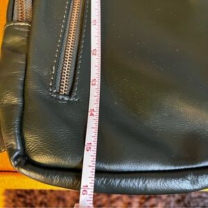 Stylish forest green real leather sling bag perfect for everyday use. Adjustable cross body bag from Sundance. Has metal ring so the strap can be hooked on either side. Front, top and back exterior zip pockets. Interior has pouch pocket. Features a sleek convenient design.