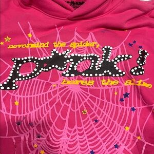 Pink spider hoodie size M worn a few times but in new condition it was authenticated on alias (goats selling website) feel free to send reasonable offers