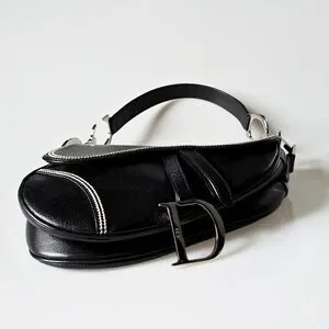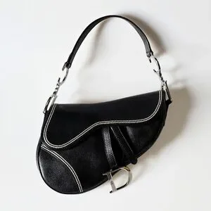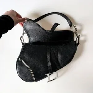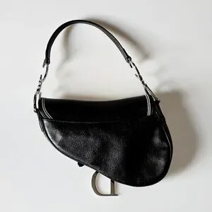 Dior Saddle Bag Vintage Black Goatskin Leather With Contrast Stitch
