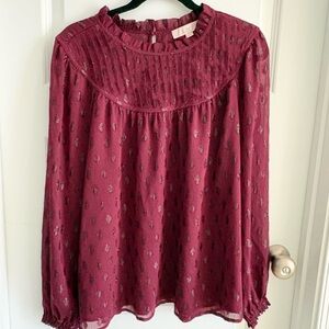 LOFT Burgundy Textured Blouse