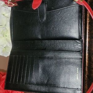 EUC. Stunning Rebecca Minkoff red leather wallet crossbody bag with adjustable strap of 23"+. Has very light signs of wear (small dent and small scuffs shown in photos) which are an easy fix.
