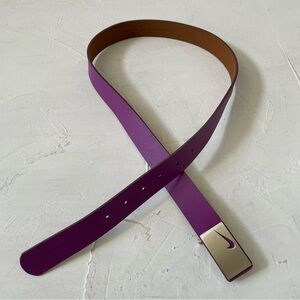 Stylish purple belt featuring a silver buckle with Nike logo. Perfect for adding a pop of color to any outfit.