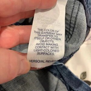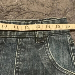 Dark wash denim skirt with pockets. Size 8. In excellent condition.