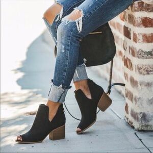 OPEN TOE NUBUCK BLACK BOOTIES