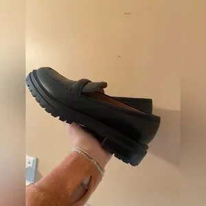 Sleek black leather loafers. Comfortable and stylish. Perfect for everyday wear.