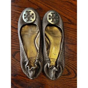 Tory Burch Gold/Brown Python Leather Embossed Reva Ballet Flats Size 7