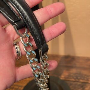 Gorgeous quilted leather with gold turnlock closure. Chunky gold & leather strap that adjusts from shoulder to crossbody bag. Rear slip pocket. Black interior with slip pocket. Comes with dust bag. 7x9