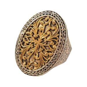 Stunning genuine Konstantino 18k yellow gold & sterling silver filigree oval statement ring. This is a gorgeous retired statement piece!!