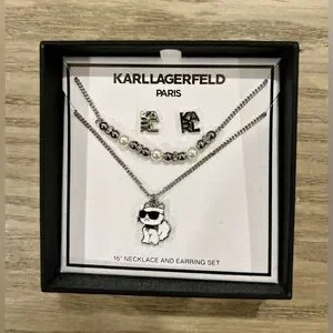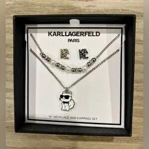 NIB! Karl Lagerfeld Silver Necklace Set & Earrings Set
