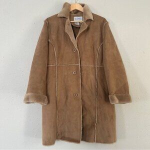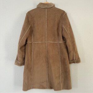Pamela McCoy Faux Suede Faux Fur Trim Tan Brown Coat Winter Fall Retro 70s