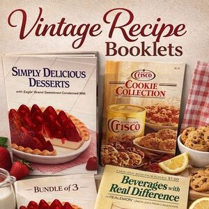 Add some nostalgic charm to your kitchen with this vintage cookbook booklet lot featuring classic recipes from well-known brands. Perfect for collectors, retro kitchen décor, or anyone who loves old-fashioned homemade treats.