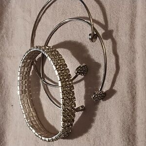 This elegant silver bracelet set features sparkling heart accents, perfect for adding a touch of glamour to any outfit. Ideal for both casual and formal occasions.