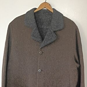 Vintage J. Jill Reversible Wool Alpaca Trench Coat Brown Gray Charcoal Women's Medium Peru