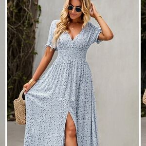 NWT beachsissi V Neck Smocked Chest Floral Print Maxi Dress