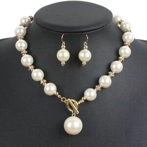 Features: Beautiful gold-tone alloy pearl necklace with a statement chunky style. Comes with matching pearl earrings, perfect for dressing up or down. Lightweight and comfortable, great for any occasion.