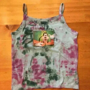 New. Tie dye Disney goofy spaghetti strap tank girl M rhinestones character