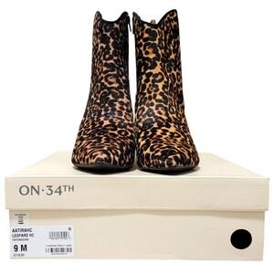 On 34th Women Aatira Kitten Heel Western Booties Size 9M Leopard Print Cow Fur