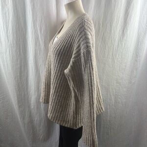 Classic v-neck chunky rib knit wool blend pullover with drop shoulders, Size S 25 1/2" Length Style: F1TPB-W5910M