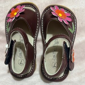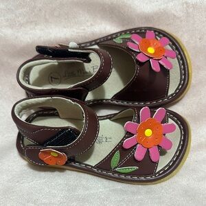 Little Me Brown and Pink Sandals with Floral Accents