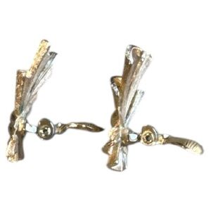 Vintage MONET Clip-On Earrings Ribbon & Knot Design Textured Gold Tone Metal