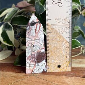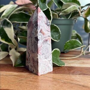 Crazy lace tower from Mexico. Gorgous red and white patterns and banding. Approximately 4.5” tall.