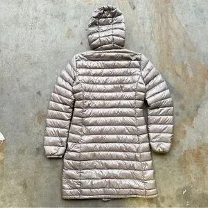 Stay warm and stylish with this women's hooded puffer coat. Perfect for chilly days, this tan coat offers both comfort and fashion.