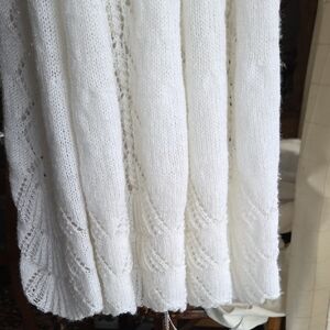 Elegant white lace baby dress with matching bonnet. Perfect for special occasions.