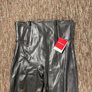 SPANX Women’s Black Faux Leather Hip Zip Leggings M New $128
