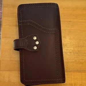 Elegant brown leather wallet by Saddleback. Features a secure strap closure, room for ID, cards, change, passport etc. beautiful leather looks brand new